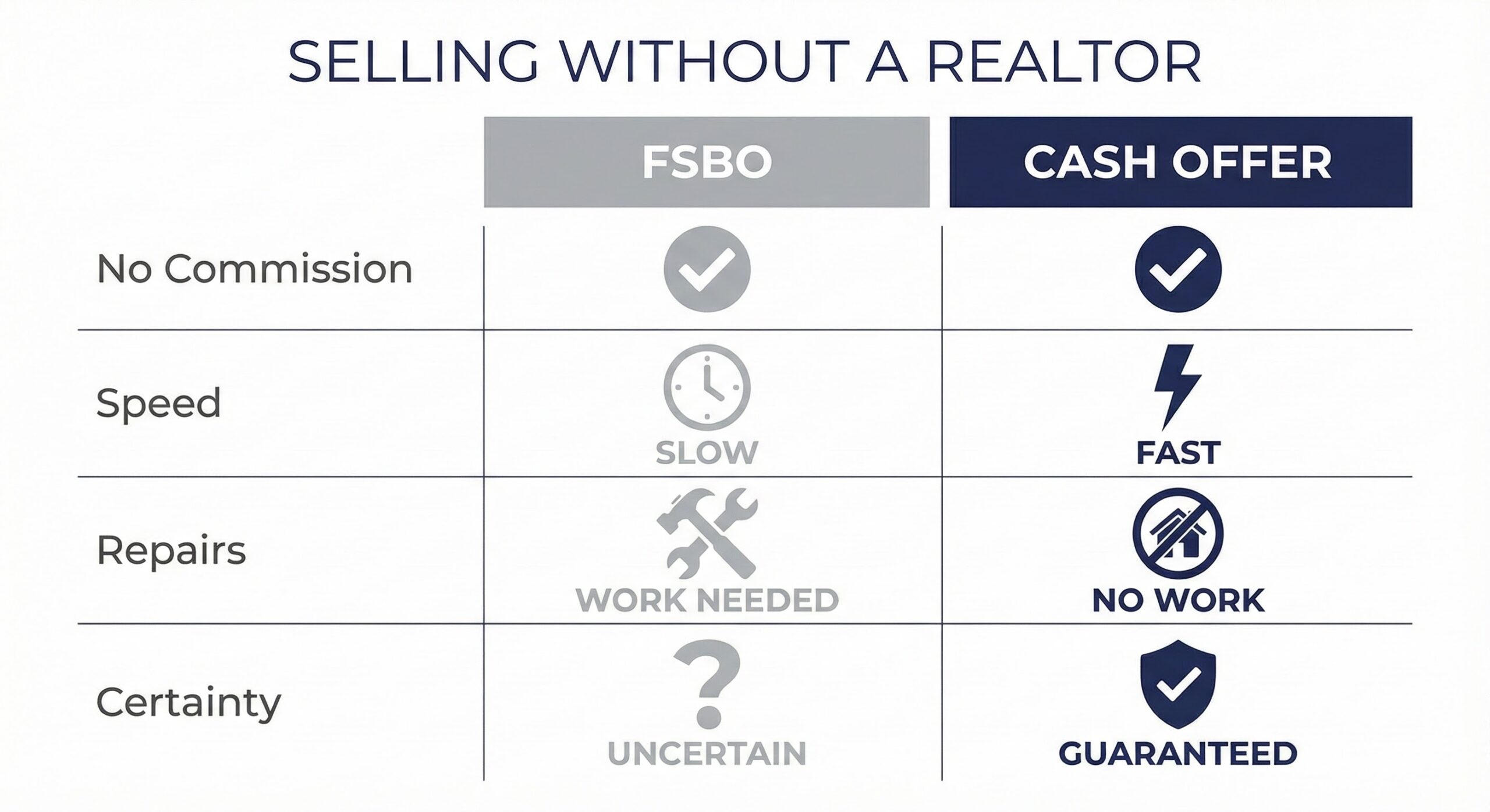 | Comparison Factor | FSBO (For Sale By Owner) | Direct Cash Offer |